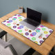 Cool and fun colourful doughnuts pattern Desk Mat. Personalise unique cool workspace for her office, room, work, workshop, gaming room.. Pattern made from illustrations of many delicious pastry doughnuts with all kinds of coloured glazing, chocolate, vanilla and all the colours, blue, yellow, pink, purple, cyan..