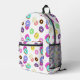 Cool and fun colourful doughnuts pattern Backpack. Pattern made from illustrations of many delicious pastry doughnuts with all kinds of coloured glazing, chocolate, vanilla and all the colours, blue, yellow, pink, purple, cyan..