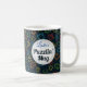 Cool and fun custom name, colourful jigsaw puzzle pieces pattern design, with the text "(name) Puzzlin' Mug". Makes an original great gift idea for all jigsaw puzzle fans, or dissectologists, of all ages.