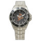 Has heft and feel of expensive stainless steel quartz watches. Good band with safety catch. I removed links, which is easy because engraved arrows show direction to push the linking pins. As always by this seller, the image (a railroad logo) is a perfect reproduction of my emailed image, and is precisely spaced and aligned.