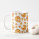 Cool and fun pizza slices pattern on white for birthday pizza party. Juicy vector made pizza with crunchy crust, cheese, salami, champignon mushrooms, olives and a sprinkle of oregano.