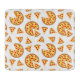 Cool and fun pizza slices pattern on white for birthday pizza party. Juicy vector made pizza with crunchy crust, cheese, salami, champignon mushrooms, olives and a sprinkle of oregano.