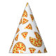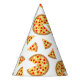 Cool and fun pizza slices pattern Party Hat for birthday pizza party. Juicy vector made pizza with crunchy crust, cheese, salami, champignon mushrooms, olives and a sprinkle of oregano.