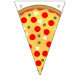 Cool fun pizza party kids birthday custom photo Bunting Flags. Pizza party Party Supplies indoor or outdoor Décor Banners Bunting Flags to celebrate kids birthday. Juicy vector made pizza with crunchy crust, cheese, salami, champignon mushrooms, olives and a sprinkle of oregano.