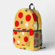 Cool fun pizza pepperoni mushroom Printed Backpack. Juicy vector made pizza with crunchy crust, cheese, salami, champignon mushrooms, olives and a sprinkle of oregano.