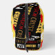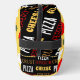 Cool fun pizza pepperoni pattern cheese crust text on black Toiletry Bags. Custom pizza lover bag. Juicy vector made pizza with crunchy crust, cheese, salami, champignon mushrooms, olives and a sprinkle of oregano.