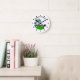 Coolest man cave wall clocks designed for a pool room or billiard hall with a funny Pool Shark Rebel intentionally scratching the eight ball off the table in a fit of rebellion as a novelty man cave gift for the billiards or pocket pool fanatic.