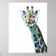 Cool funny trendy giraffe with glasses, earphones and scarf. Black and white antique sketch giraffe, yellow glasses, blue earphones, blue and yellow zigzag chevron pattern scarf, clear background. Personalise it with your name favourite word or phrase by clicking the customise button and add text, choose the text font and colour. Image print