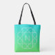 Cool Geometric Monogram | Blue & Lime Green Ombre Tote Bag