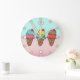 Cool Girly Colourful Ice Cream Cones Large Clock