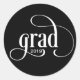 An envelope seal sticker with trendy script typeface spelling out the word "grad" and your graduating class year with white text over a contrasting black background. Personalise with your class year. This sticker is a nice choice for using on your graduation announcements and invitations as well as other correspondence.