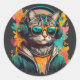 Cool Groovy Cat with Headphones Listening to Music Classic Round Sticker