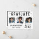 Cool, modern grunge style, 3 photo graduation announcement cards. This unique, custom design features your personal photos, name, graduation year and high school, college or university name painted on a background of white. The back of the card contains further information about the graduate.
