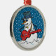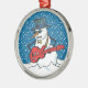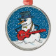 This Christmas ornament features a cool snowman wearing shades and playing a guitar in the snow.