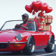 Cool Guy in Red Convertible with Valentines Holiday Card