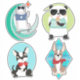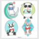 A cool collection of hipster animals to stick on just about anything, this set of four stickers includes a bear on a skateboard, a panda eating an ice cream cone, a cute boston terrior in red bow tie and a cool dog in glasses with red bandanna around its neck.