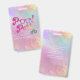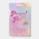 Cool holographic tropical leaves script pool party ID badge