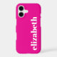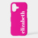 This hot pink phone case is brightly colored and budget friendly. You can edit the white text to show the correct name or monogram.