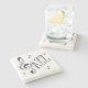 The coasters are gorgeous, a quality feel and heavy weight. They look like a precious archeological find. A rustic stone juxtaposed with a modern floral black and white print. I like the way the print goes slightly imperfect on the cut stone edges giving them a kind-of natural beauty.
