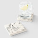 The coasters are gorgeous, a quality feel and heavy weight. They look like a precious archeological find. A rustic stone juxtaposed with a modern floral black and white print. I like the way the print goes slightly imperfect on the cut stone edges giving them a kind-of natural beauty.