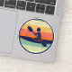 A cool kayaking gift for a kayaker featuring a person in a kayak or canoe on the lake in front of a beautiful sunset.
