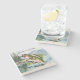 The coasters are gorgeous, a quality feel and heavy weight. They look like a precious archeological find. A rustic stone juxtaposed with a modern floral black and white print. I like the way the print goes slightly imperfect on the cut stone edges giving them a kind-of natural beauty.