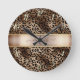 Cool Leopard Pattern Black Bronze Monogram Round Clock