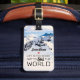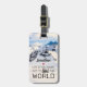 Funny winter sport travel luggage tag featuring a snowy mountain background, personalise with your name, and the humourous saying "life is too short not to ski the world". Great for identifying your bag quicker and easier at the terminals, and in the event of it being lost it can be reunited with its rightful owner.