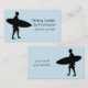 This is a cool surf instructor light blue color business card with a surfer silhouette next to your name, title and phone number on one side and website and email on the other side.