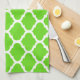 Cool Lime Green Moroccan Quatrefoil Pattern Tea Towel