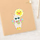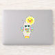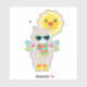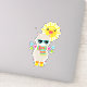 Vinyl decal / contour sticker with a cool looking llama wearing some dark sunglasses. Dressed in a colourful striped scarf and fun little boots. A bright yellow sun with a happy kawaii face in the background. Whimsical colourful triangles surround this fun loving llama.