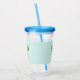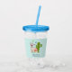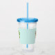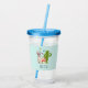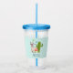 A personalised acrylic tumbler illustrated with a cute llama wearing heart-shaped sunglasses. Some stars, a mushroom and a green cactus complete the illustration. Whimsical and cute.