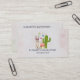 Business cards Illustrated with a cute llama wearing heart-shaped sunglasses. Some stars, a mushroom and a green cactus complete the illustration. Whimsical and cute.
