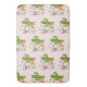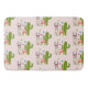 Patterned bath mat illustrated with a cute llama wearing heart-shaped sunglasses. Some stars, a mushroom and a green cactus complete the illustration. Whimsical and cute.