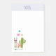 Sticky notes illustrated with a cute llama wearing heart-shaped sunglasses. Some stars, a boho style arrow, a red mushroom and a green cactus complete the illustration. Whimsical and cute.