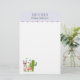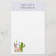 Stationery illustrated with a cute llama wearing heart-shaped sunglasses. Some stars, a mushroom and a green cactus complete the illustration. Whimsical and cute.