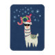 Cool Llama in Santa Hat with Snowflakes Christmas Magnet