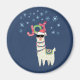 Cool Llama in Santa Hat with Snowflakes Magnet