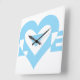 Cool Love Graphic, Blue Square Wall Clock