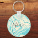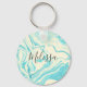 A stylish and sophisticated keychain with an elegant faux marble pattern with swirling colors in turquoise blue and cream colors.