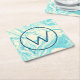 Cool Marble Design in Turquoise and Cream Monogram Square Paper Coaster