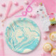 Cool Marble Design in Turquoise and Cream Paper Plate