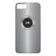 Men's cool business smartphone case with silver brushed aluminium looking background digitally PRINTED on the cover and monogram emblem you can personalise and make your own by replacing the template name initials. Designed for business professional or personal use.