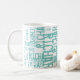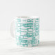 Create a stylish and modern mug personalised with your own name repeated in blue, all over the white background. It's easy and fun to create and the end result is cool