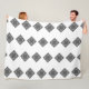 Cool Modern Boho Black and White Pattern Rhombus Fleece Blanket