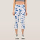 Cool Modern Elegant Blue Floral Toile Capri Leggings