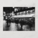 Blurry motion image of people walking on street at night in Paris. Cool, urban, modern black and white photography of Parisian culture.