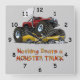 This is a Very Cool Monster Truck Crushing a Car Drawing Wall Clock