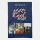 Cool Mum Hand Lettering Mother`s Day 4 Photo Collage kitchen towel. Pastel orange and blue artistic handwriting and drawing on dark blue background. Add 4 photos and name and make a great kitchen gift for best mum for Mother`s Day, birthday or Christmas.