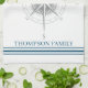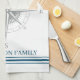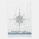 Stylish and fun, these towels are the perfect accessory to anyone's kitchen at their beach home or on their boat. The design features a white background with a grey rustic compass image with blue typography that can be changed to fit your family's name. Also has three stripes at the bottom. Great for any sea-loving captain and his or her family.